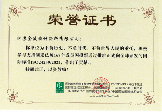 榮譽(yù)時(shí)刻┃金陵涂料參與制定國(guó)際標(biāo)準(zhǔn)并榮獲表彰